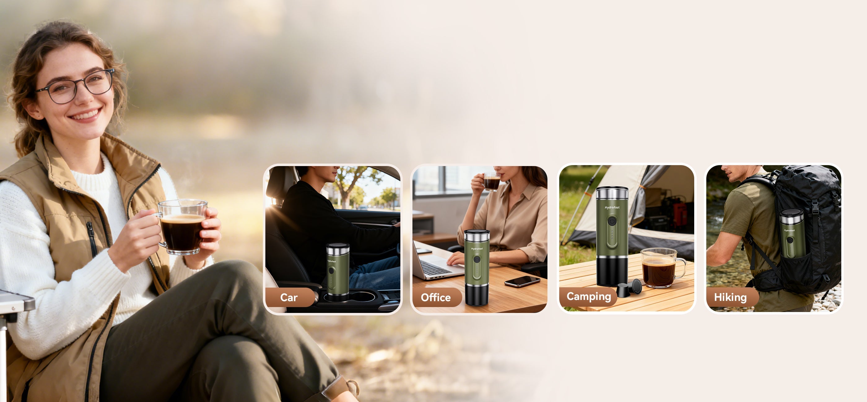 Hydrofast PO-100 is designed specifically for outdoor enthusiasts, business travelers, and small families, addressing their key need in power-free mobile scenarios: enjoying professional-grade espresso anytime, anywhere. Equipped with a wireless rapid heating system, it takes only 180-240 seconds to heat 50ml of room-temperature water to 92°C, allowing you to easily extract coffee with a pure, authentic taste.